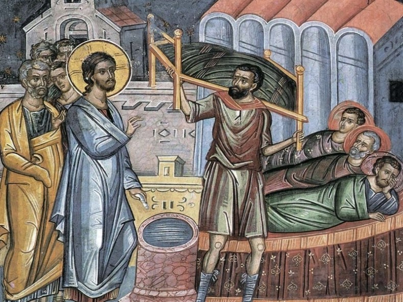 Господ Иисус Христос забелязал лежащия и го попитал: искаш ли да оздравееш? Болният отговорил: да, но нямам човек, който да ми помогне. Тогава Господ му казал: „стани, вземи постелката си и ходи". И болният станал, взел постелката си и тръгнал.